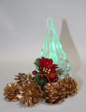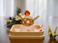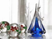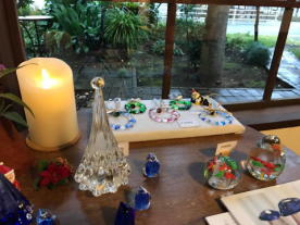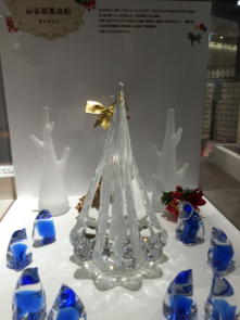 ガラスのクリスマスツリーと鏡餅を展示します。