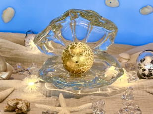 「愛・希望・夢・平和・絆」を表す天盤を捧げ持ちます。